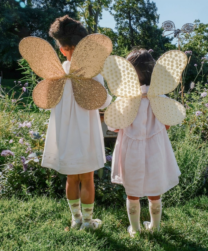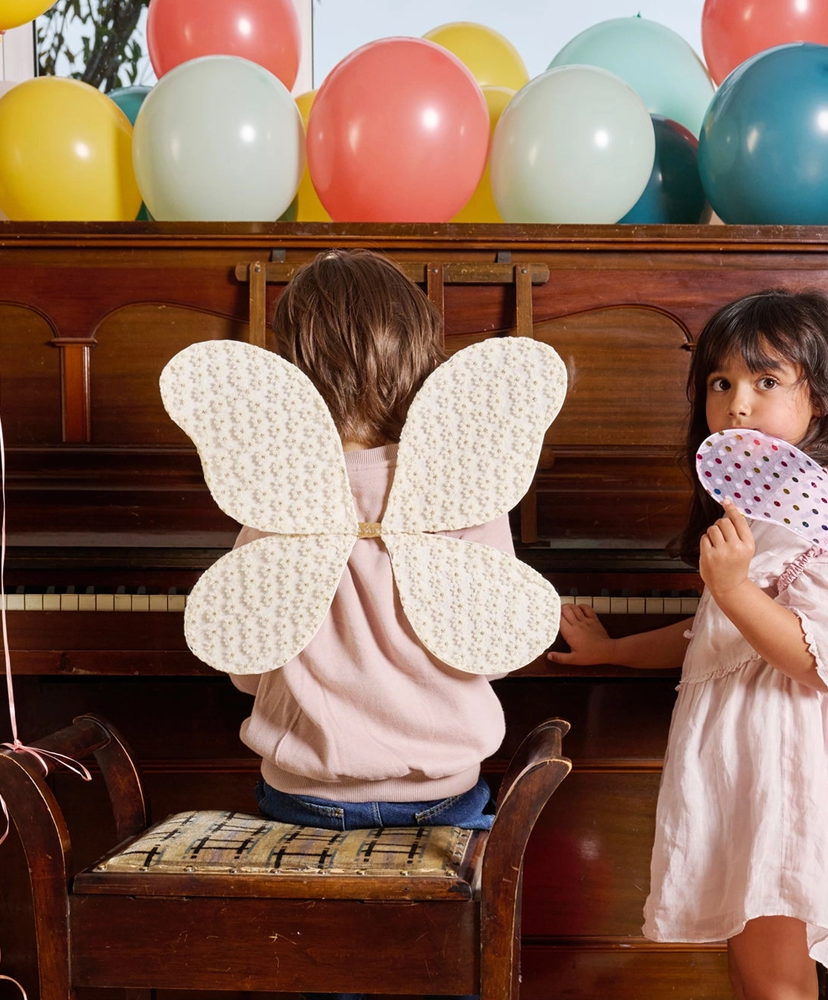 Confeccionadas en delicada tela de margaritas tejidas al crochet, estas alitas cuentan con tirantes elásticos forrados en tela que las hacen cómodas y fáciles de usar. El accesorio perfecto para pequeñas soñadoras, creadoras de coronas de flores y amantes de la magia ✨💛🌼
