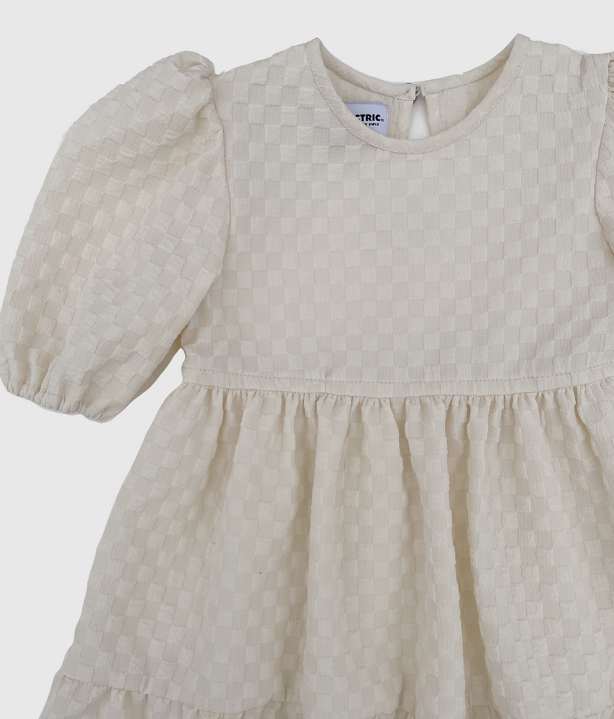 Hermoso vestido ideal para este verano, hecho con tela super suave, con una textura de cuadritos (check) en super tendencia, forro 100% algodón, mangas cortas plisadas para lograr el puffy effect que amamos. El vestido es cómodo y fácil de poner definitivamente un “must” para este verano.