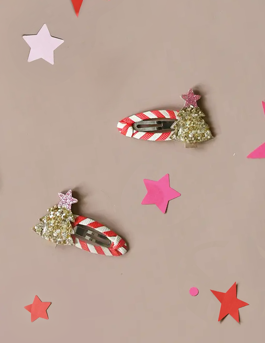 Con un brillante glitter dorado y encantadoras estrellitas rosas, estos hair clips son el complemento ideal para cualquier look festivo. Originales y llamativos, añadirán un toque mágico a los peinados de tus pequeñas, ¡perfectas para deslumbrar en todas las fiestas!