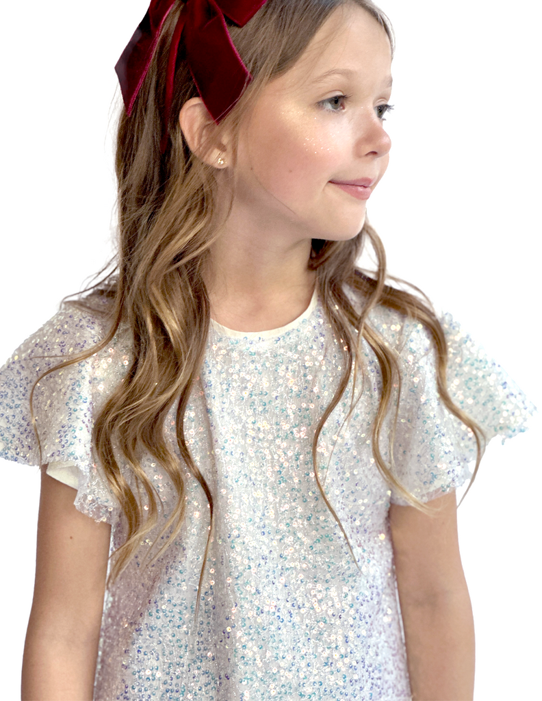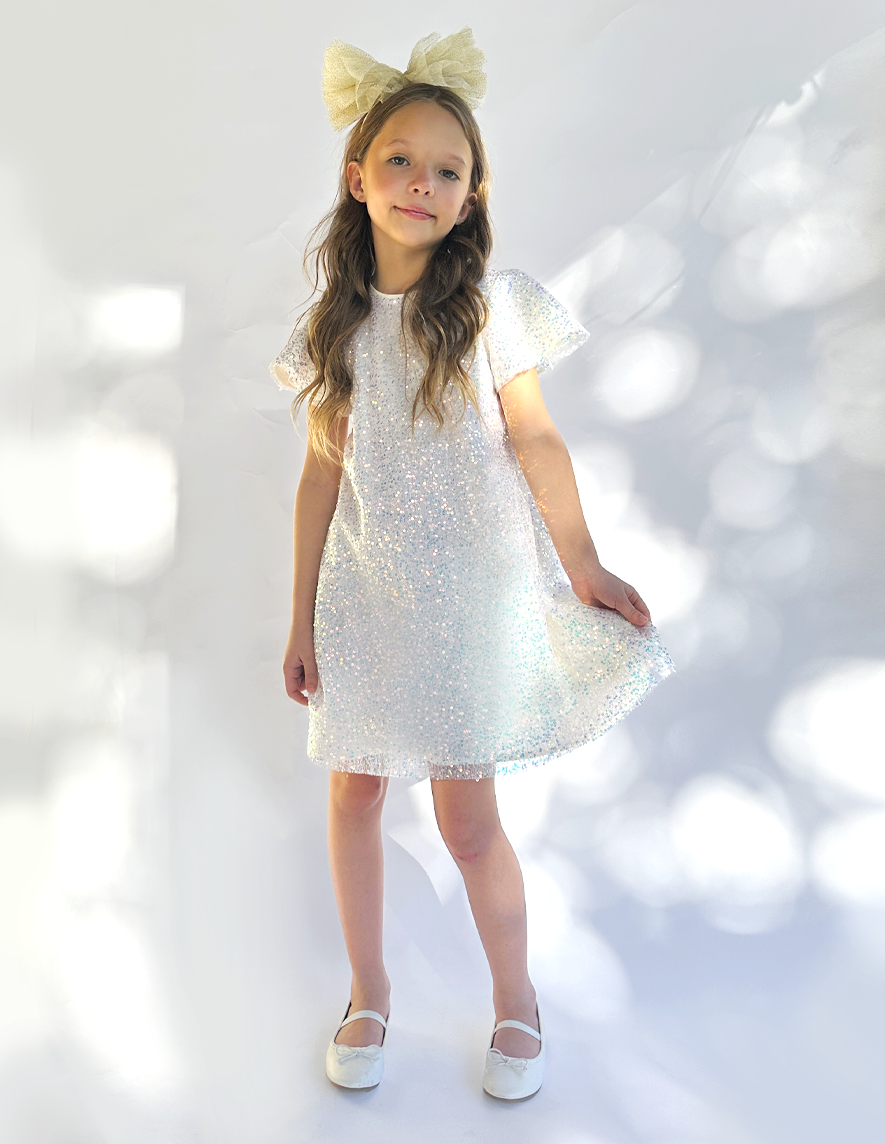 ¡Este vestido con pequeñas lentejuelas tornasol lleno de brillos y encanto refleja destellos mágicos en cada movimiento!