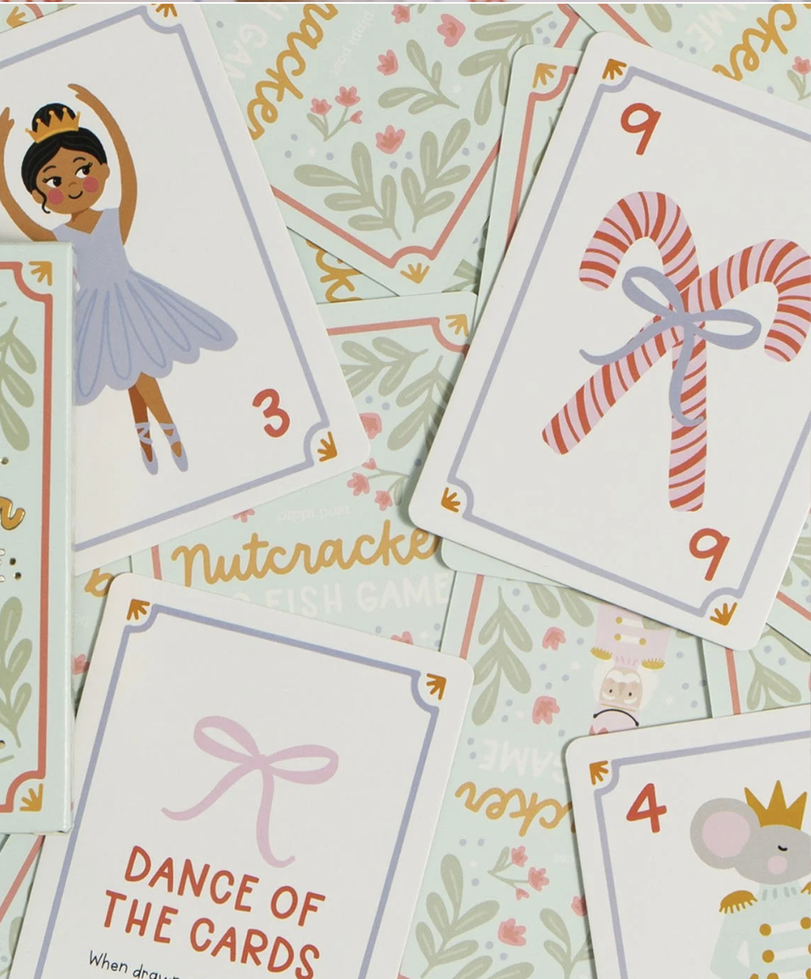 Cada carta tiene ilustraciones hechas a mano con personajes como Clara, el Cascanueces y el Rey Ratón llenas de color y detalle.