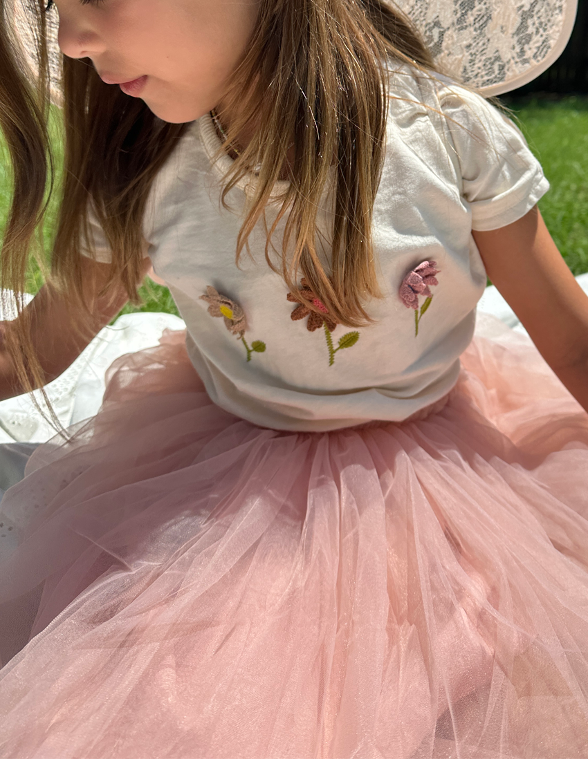 Encantadora faldita de 3 capas de tul para niñas de aproximadamente 4 a 10 años, cuenta con un suave elástico en la cintura.