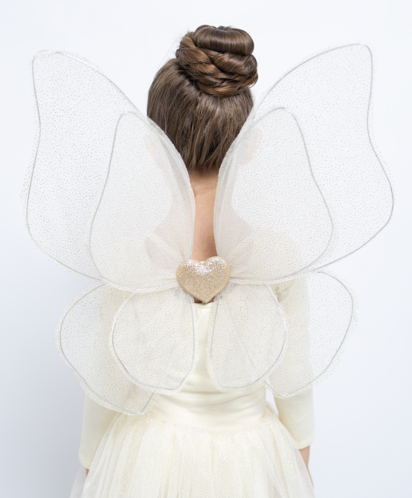 Ligeras, cómodas y fáciles de usar, perfectas para juegos de imaginación, disfraces y ocasiones especiales. Llenas de brillos que no se caen y un tierno corazón dorado al centro.