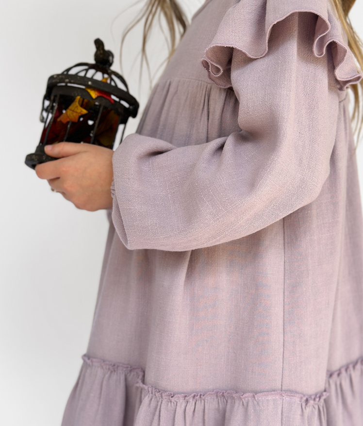 Un vestido tierno, encantador y femenino. destaca por sus olánes en los hombros, y el olán de la falda que esta sobrepuesto, dejando ver la línea de costura con un hilo en un ligero contraste, esta lleno de detalles hermosos en su costura. orgullosamente maquilado por manos mexicanas.