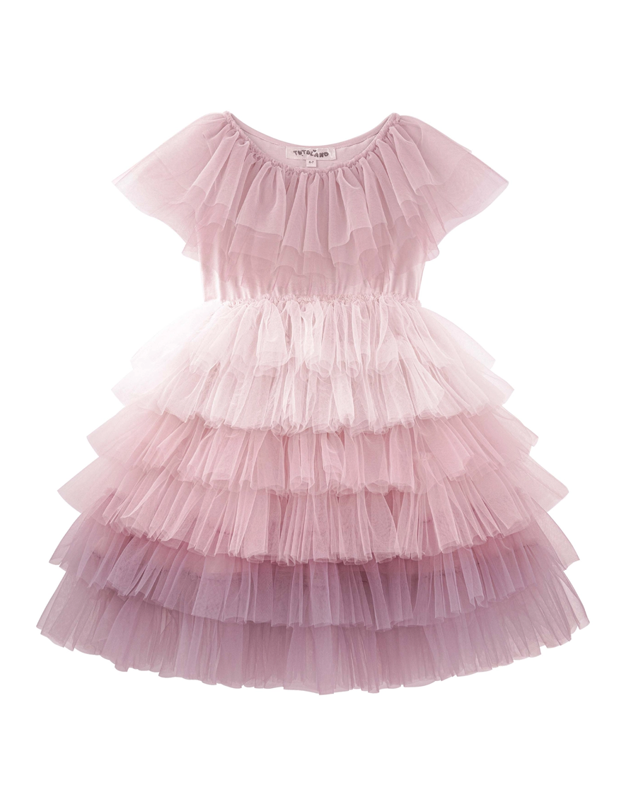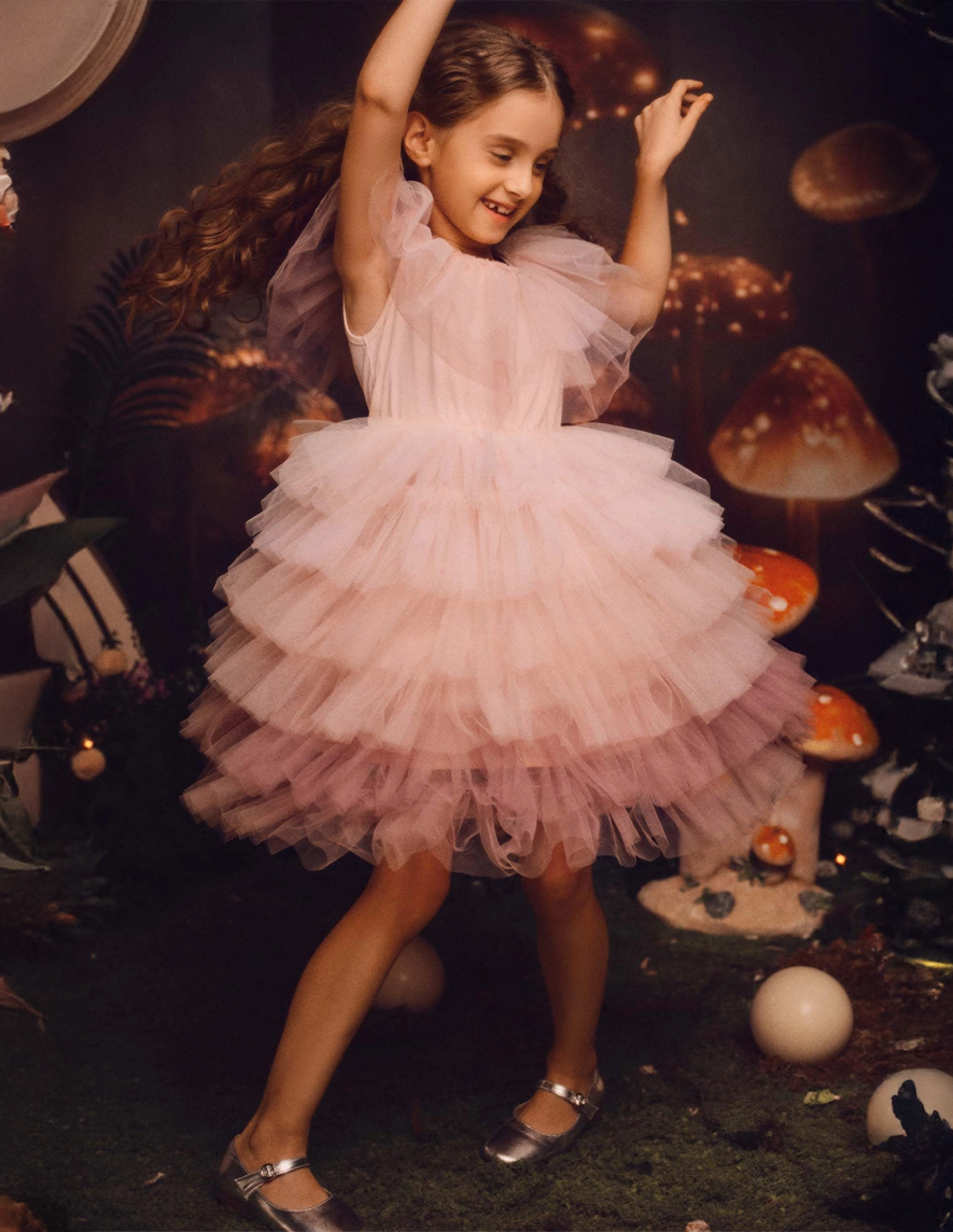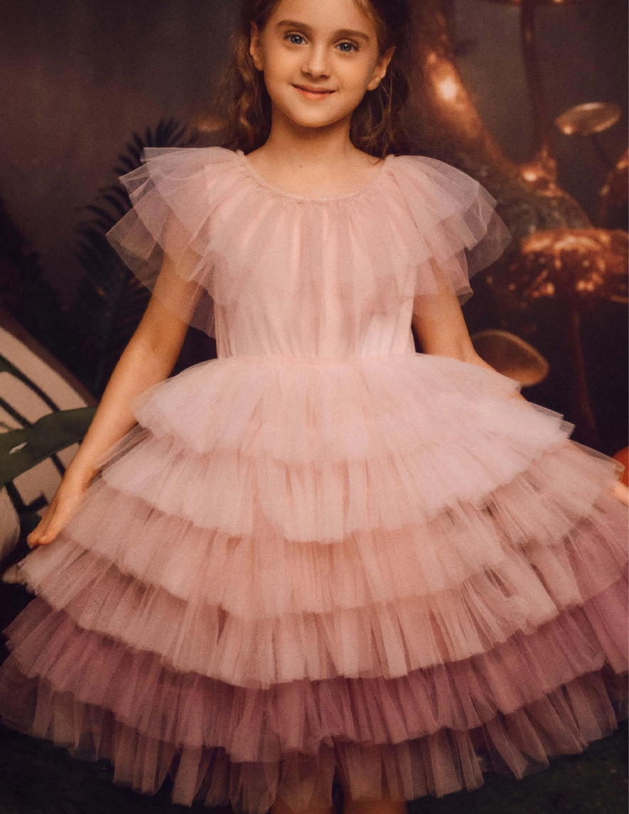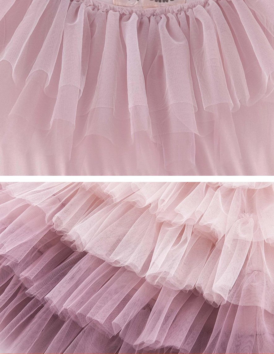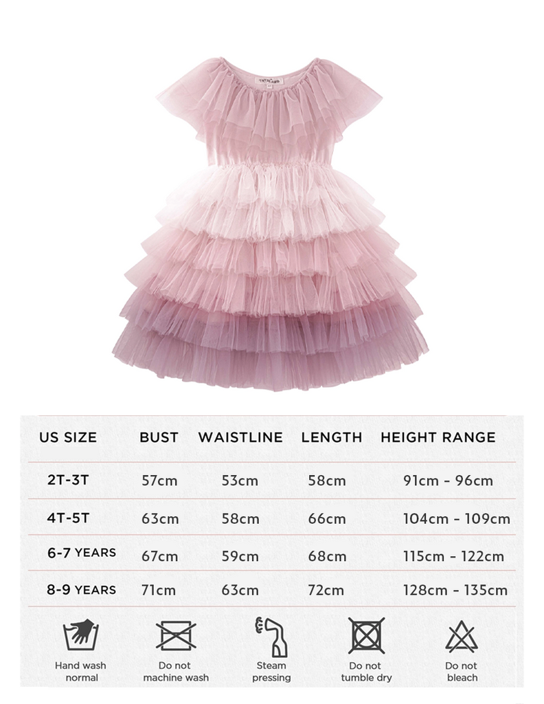 Con capas ligeras de tul en tonos degradados y un diseño estilo princesa, este vestido es ideal para momentos mágicos, sesiones de fotos o celebraciones especiales. Su falda en volantes escalonados crea más volumen en la falda, y la cintura elástica asegura comodidad en cada aventura.