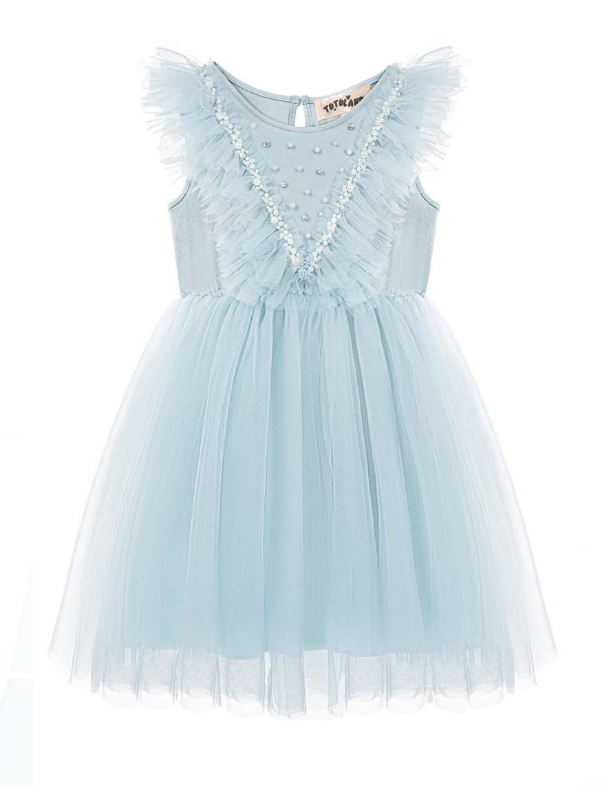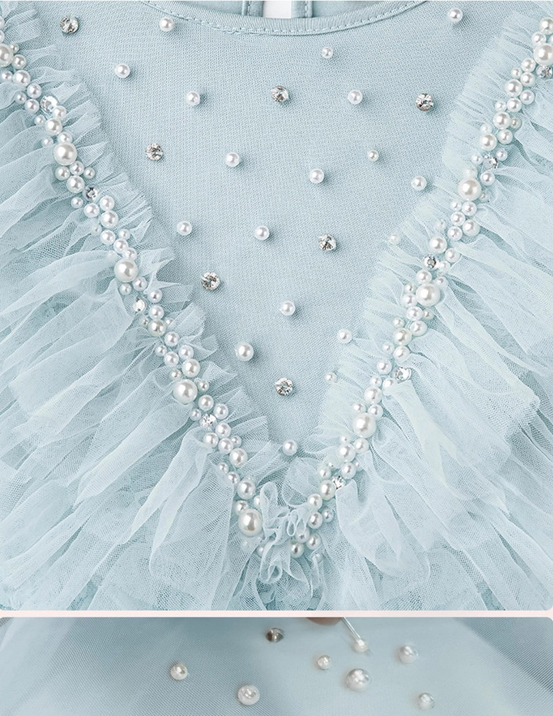 Nuestro encantador vestido de tul es un sueño hecho realidad para todas las pequeñitas. Esta hecho con una suave tela stretch 100% algodón, detalles bordados de perlas y brillos y delicadas capas de un suave tul que invitan a girar, este vestido es perfecto para momentos especiales y para crear recuerdos llenos de magia y estilo.
